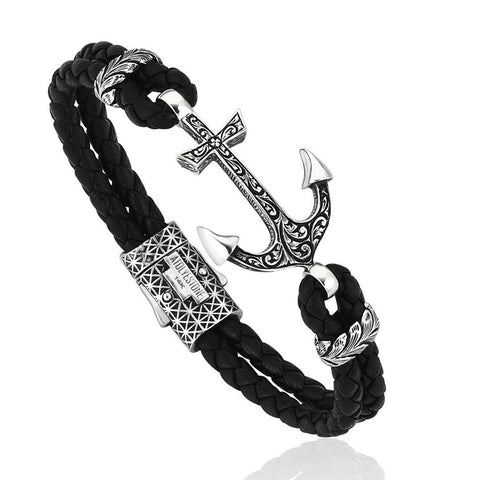 Classic Anchor Leather Bracelet - Solid Yellow Gold