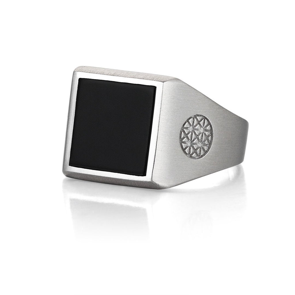 925 Sterling Silver brushed ring with natural stone - Matt Onyx